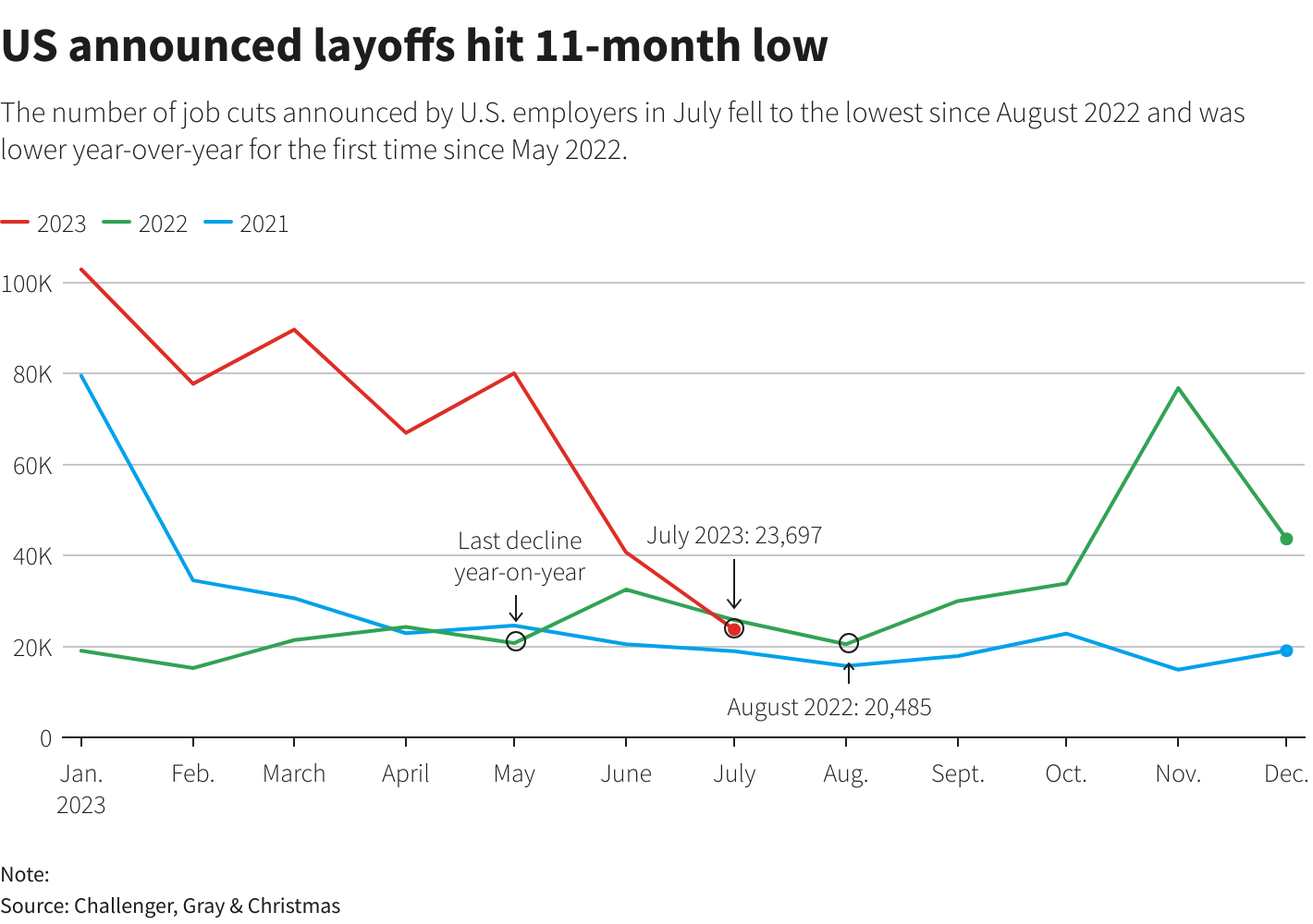 就业咨询公司Challenger, Gray & Christmas周四发布的月度报告数据显示,上个月挑战者企业裁员人数达到近一年来的最低水平,因企业“对裁员感到厌倦”。